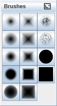 The brushes dock contains buttons representing your available brushes. Click on any one to apply it to your tool. By default, it is on the right side of the main window.