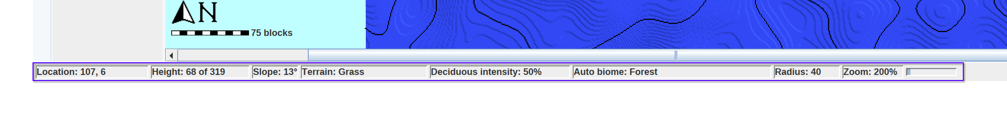 The main WorldPainter window is called the workspace. It consists of the menu bar, the status bar, several docks, and the viewport. As you'll soon see, WorldPainter's workspace layout can be extensively customized.
